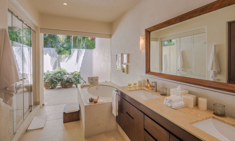 Sleeps 2 – King-size bed. En-suite bathroom with closet, twin vanities, bathtub and separate shower. Access to shared pool terrace with ocean view.